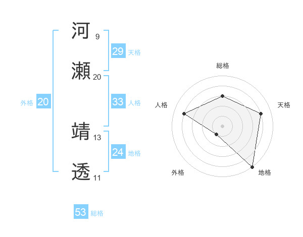 河瀬 靖透さんの総格は53画の3点!