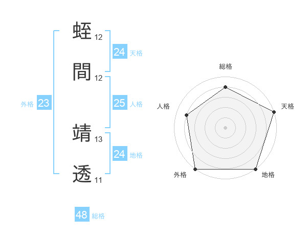 蛭間 靖透さんの天格は24画の5点!