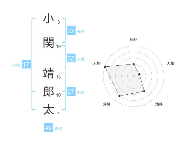 小関 靖郎太さんを姓名の画数から五運を鑑定