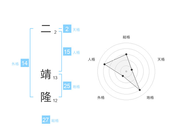 二 靖隆さんの総格は27画の3点!