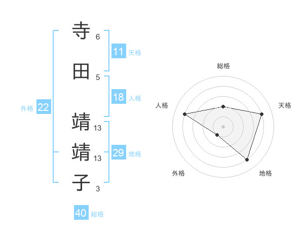 寺田 靖靖子さんを姓名の画数から五運を鑑定
