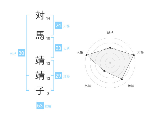 対馬 靖靖子さんの天格は24画の5点!