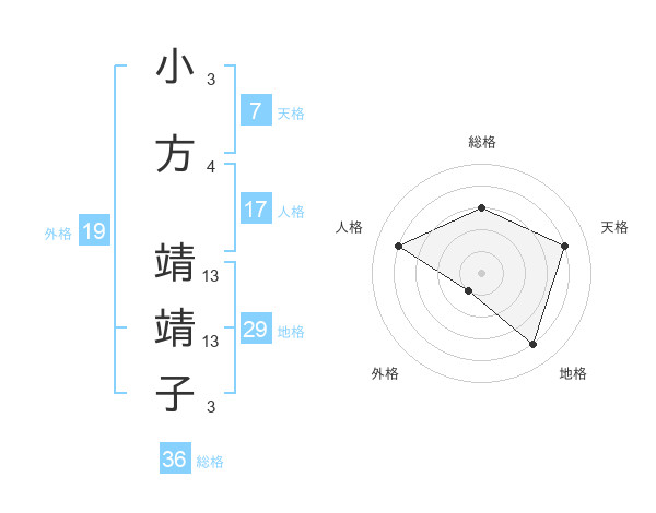小方 靖靖子さんを姓名の画数から五運を鑑定