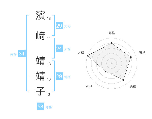 濱﨑 靖靖子さんを姓名の画数から五運を鑑定