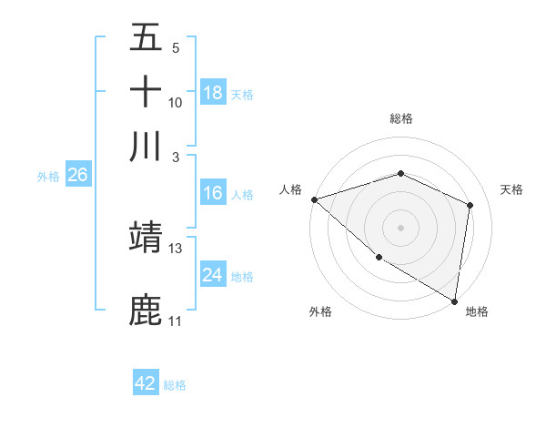 五十川 靖鹿さんを姓名の画数から五運を鑑定