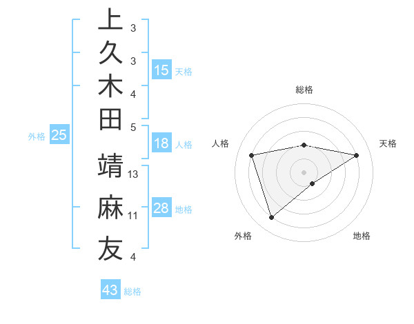 上久木田 靖麻友さんを姓名の画数から五運を鑑定