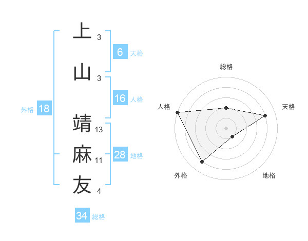 上山 靖麻友さんを姓名の画数から五運を鑑定