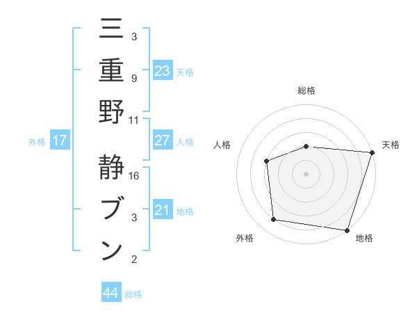 三重野 静ブンさんを姓名の画数から五運を鑑定
