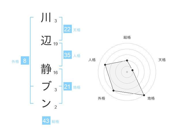 川辺 静ブンさんの総格は43画の2点!