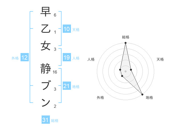 早乙女 静ブンさんを姓名の画数から五運を鑑定
