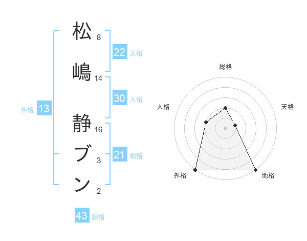 松嶋 静ブンさんの総格は43画の2点!