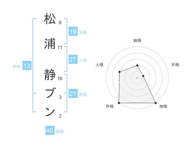 松浦 静ブンさんの総格は40画の2点