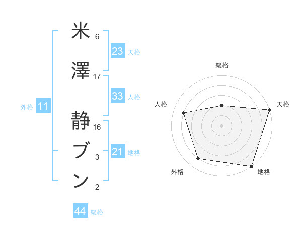 米澤 静ブンさんを姓名の画数から五運を鑑定