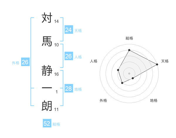 対馬 静一朗さんの総格は52画の4点!