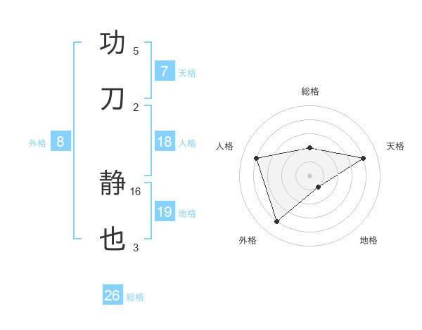功刀 静也さんの総格は26画の2点!