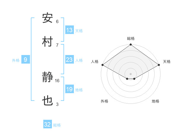 安村 静也さんの総格は32画の5点!