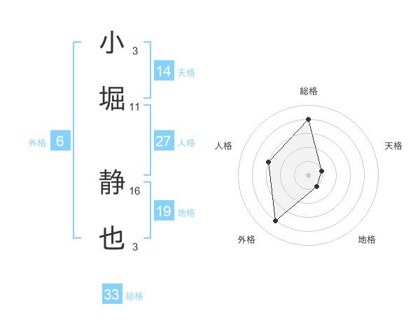 小堀 静也さんの総格は33画の4点!