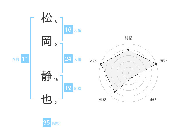 松岡 静也さんの総格は35画の4点!