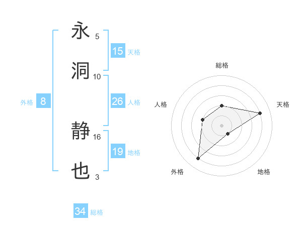永洞 静也さんの総格は34画の2点!