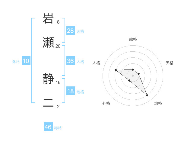 岩瀬 静二さんの総格は46画の1点!