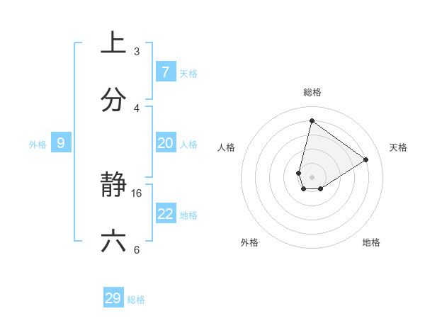 上分 静六さんの総格は29画の4点!