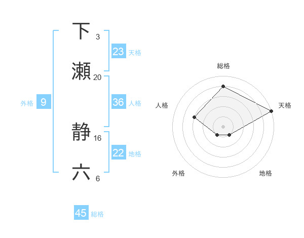 下瀬 静六さんを姓名の画数から五運を鑑定