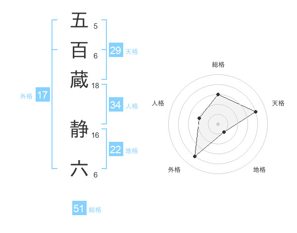 五百蔵 静六さんを姓名の画数から五運を鑑定