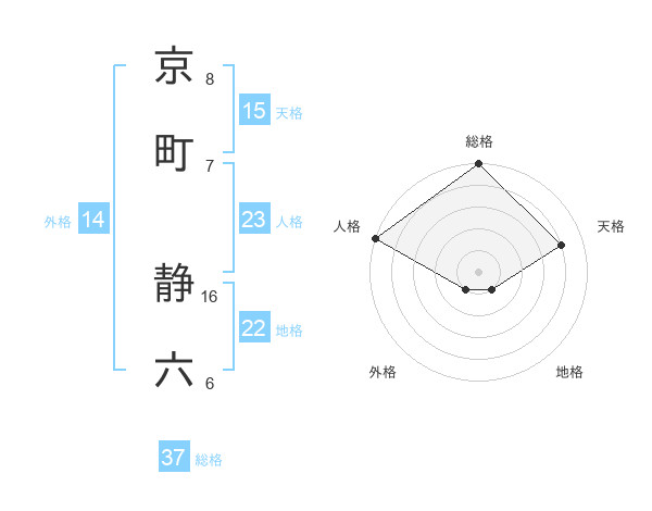 京町 静六さんの総格は37画の5点!