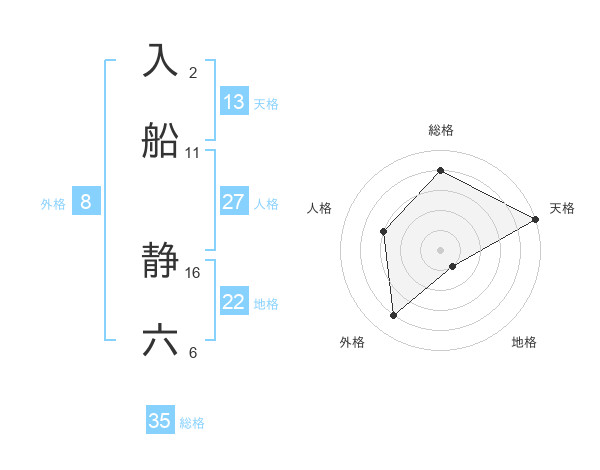 入船 静六さんの総格は35画の4点!