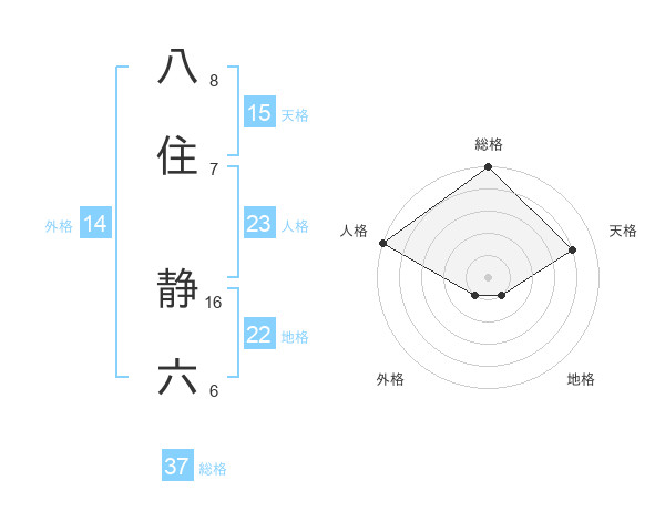 八住 静六さんの総格は37画の5点!