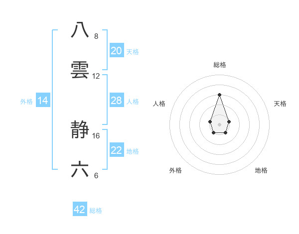 八雲 静六さんを姓名の画数から五運を鑑定
