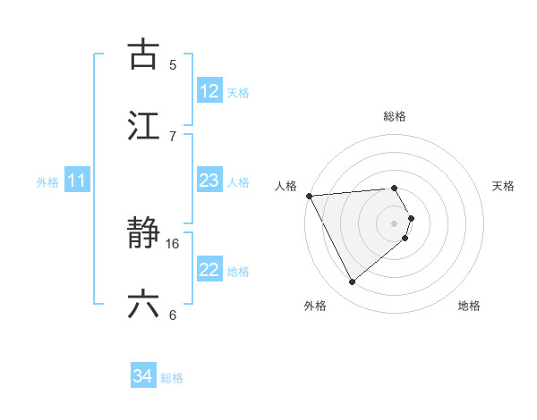 古江 静六さんの総格は34画の2点!