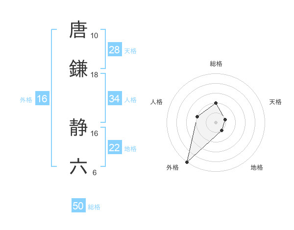 唐鎌 静六さんを姓名の画数から五運を鑑定