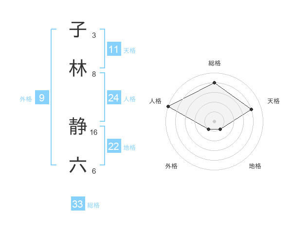 子林 静六さんの総格は33画の4点!