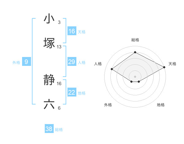 小塚 静六さんの総格は38画の4点!