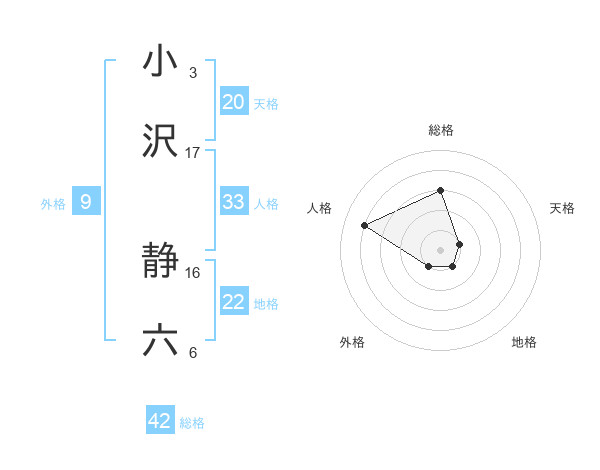 小沢 静六さんの総格は42画の3点!