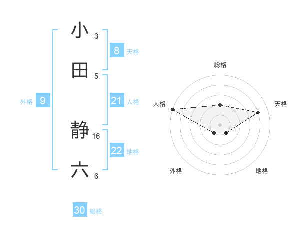 小田 静六さんの総格は30画の2点!