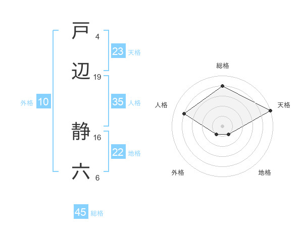 戸辺 静六さんの総格は45画の4点!