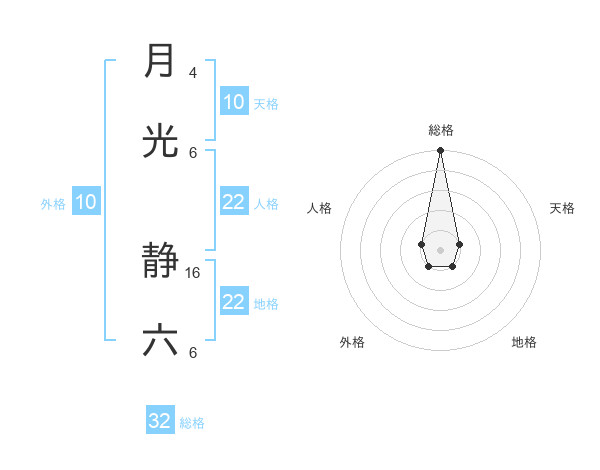 月光 静六さんの総格は32画の5点!