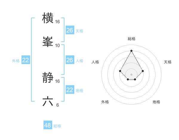 横峯 静六さんの総格は48画の4点!
