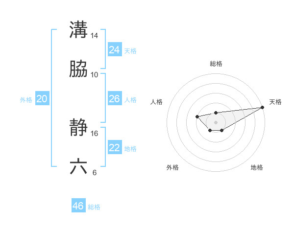溝脇 静六さんの総格は46画の1点!