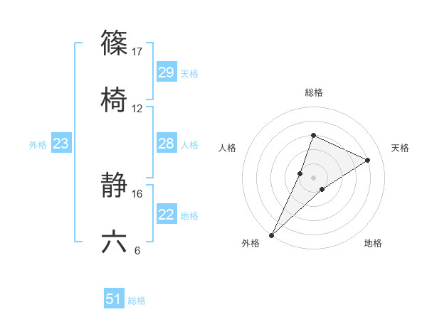 篠椅 静六さんを姓名の画数から五運を鑑定