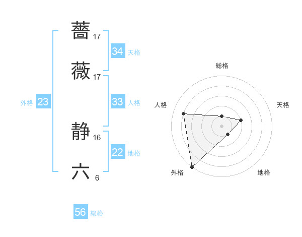 薔薇 静六さんの外格は23画の5点!