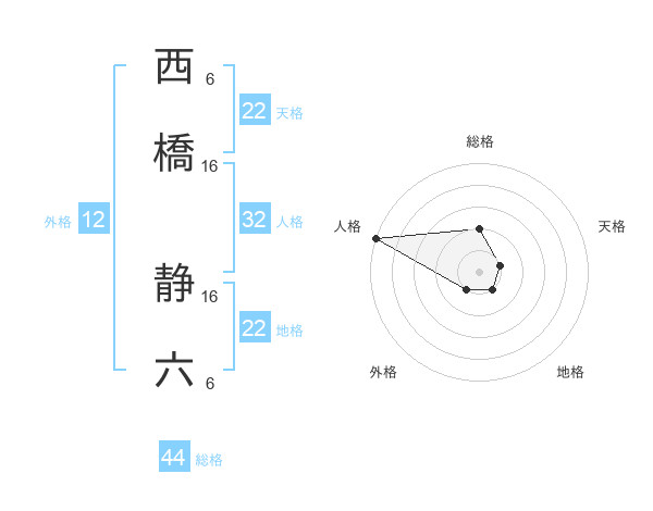 西橋 静六さんの総格は44画の2点!