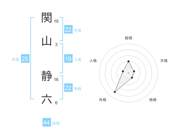 関山 静六さんの総格は44画の2点!