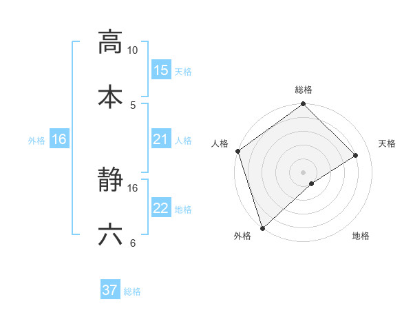 高本 静六さんの総格は37画の5点!