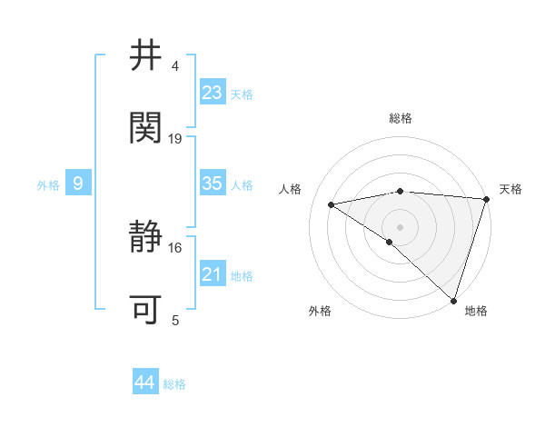 井関 静可さんの総格は44画の2点!