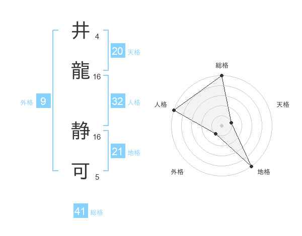 井龍 静可さんの天格は20画の1点!