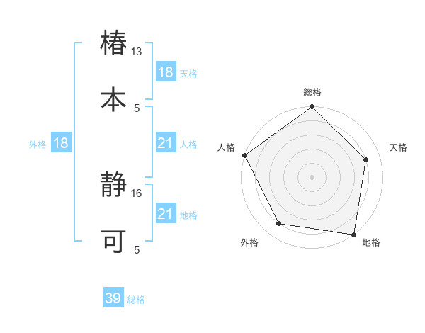 椿本 静可さんの地格は21画の5点!