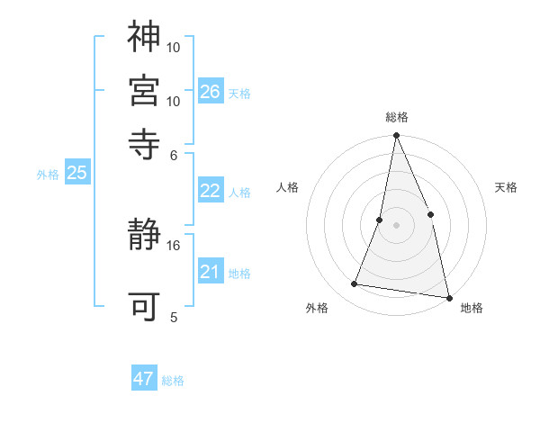 神宮寺 静可さんの総格は47画の5点!